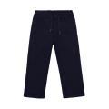 Pantalone Bikkembergs da bambino a tinta unita in colorazione blu. Modello con molla elastica in vita con lacci, chiusura sul davanti con bottone, comode tasche laterali, taschino sul retro e fondo con gamba dritta.