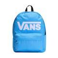 Zaino Vans in colorazione a tinta unita in colorazione azzurro con classico logo del brand sul davanti in contrasto di colore. Modello con manico singolo, bretelle sul retro, chiusura con cerniera e ampia tasca sul davanti. Materiale in Tessuto. Dimensione: 32 x 42 x 12 cm.