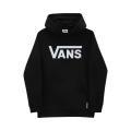 Felpa Vans da bambino a tinta unita in colorazione nero con classica stampa del brand sul davanti in contrasto di colore. Modello con ampio cappuccio, tasca marsupio sul davanti, maniche lunghe con polsini, fondo con orlo dritto e molla elastica in vita. Tessuto in Cotone.