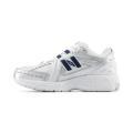 Scarpe New Balance 1906 da bambino in colorazione bianco e grigio con dettagli su tutto l'articolo e classico logo del brand posto lateralmente in contrasto di colore. Modello con chiusura con stringhe, intersuola ABZORB per attutire impatti e suola in gomma. Tomaia in Tessuto e Similpelle.