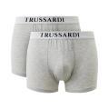 Boxer Trussardi da uomo confezione da due paia a tinta unita in colorazione grigio con molla elastica in vita con scritta del brand all'interno in contrasto di colore. Tessuto in misto Cotone.