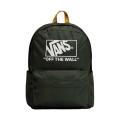 Zaino Vans in colorazione a tinta unita in colorazione militare con classico logo del brand sul davanti e scritte laterali in contrasto di colore. Modello con manico singolo, bretelle sul retro, chiusura con cerniera e ampia tasca sul davanti. Materiale in Poliestere. Dimensione: 42 x 32 x 12 cm.