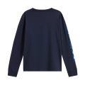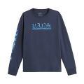 T-shirt Vans da bambino a tinta unita in colorazione blu con stampa del brand posta sul davanti e sulle maniche in contrasto di colore. Modello girocollo, maniche lunghe e fondo con orlo dritto. Tessuto in Cotone.