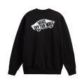 Felpa Vans da uomo a tinta unita in colorazione nero con stampa sul petto e in grande sul retro in contrasto di colore. Modello girocollo, maniche lunghe con polsini, fondo con orlo dritto e molla elastica in vita. Tessuto in Cotone.