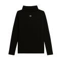 Maglia Freddy da bambina a tinta unita in colorazione nero con classica targhetta del brand realizzata in metallo posto sul davanti in contrasto di colore. Modello con collo alto, maniche lunghe con polsini, fondo con orlo dritto e molla elastica in vita. Tessuto in misto Poliestere.