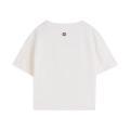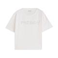 T-shirt Freddy da bambina a tinta unita in colorazione panna con scritta del brand posta sul davanti realizzata con brillantini in contrasto di colore. Modello girocollo, maniche corte e fondo con orlo dritto. Tessuto in misto Cotone.