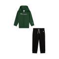 Completo Champion da neonato in colorazione verde e nero. Modello con felpa con ampio cappuccio, logo del brand sul davanti, chiusura sul davanti con cerniera, maniche lunghe con polsini, tasche laterali, fondo con orlo dritto e molla elastica in vita. Pantafelpa con felpa, comode tasche laterali e fondo con polsini alle caviglie. Tessuto in misto Cotone.