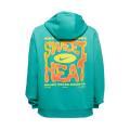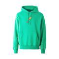 Felpa Nike da uomo a tinta unita in colorazione verde con stampa del brand applicato sul davanti e in grande sul retro in contrasto di colore. Modello con ampio cappuccio, maniche lunghe con polsini, tasca marsupio sul davanti, fondo con orlo dritto e molla elastica in vita. Tessuto in misto cotone.