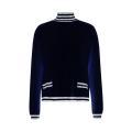 Maglia Gaudi da donna a tinta unita in colorazione blu von dettagli sul collo e sulle maniche in contrasto di colore. Modello con collo alto, maniche lunghe con polsini, tasca laterali, fondo con orlo dritto e molla elastica in vita. Tessuto in misto Poliammide.