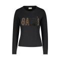 T-shirt Gaudi da donna a tinta unita in colorazione nero con scritta del brand posta sul davanti realizzata con brillantini in contrasto di colore. Modello girocollo, maniche lunghe e fondo con orlo dritto. Tessuto in Cotone.
