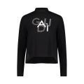 T-shirt Gaudi da donna a tinta unita in colorazione nero con scritta del brand posta sul davanti realizzato con brillantini in contrasto di colore. Modello mezzo collo, maniche lunghe e fondo con orlo dritto. Tessuto in misto Viscosa.