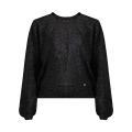 Maglia Gaudi da donna a tinta unita in colorazione nero con brillantini all'interno e targhetta del brand realizzata in metallo posta sul fondo in contrasto di colore. Modello girocollo, maniche lunghe con polsini, fondo con orlo dritto e molla elastica in vita. Tessuto in misto Poliestere.