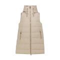 Giubbotto Gaudi da donna a tinta unita in colorazione beige. Modello smanicato con taglio lungo, ampio cappuccio con lacci, chiusura sul davanti con cerniera, comode tasche laterali e fondo con orlo dritto. Tessuto in Poliestere.