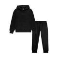 Tuta Freddy da bambina a tinta unita in colorazione nero. Modello di felpa con ampio cappuccio con logo del brand posto sul davanti in tono su tono, maniche lunghe con polsini e fondo con orlo dritto. Pantafelpa con molla elastica in vita, logo sulla gamba in tono su tono ì, comode tasche laterali e fondo con polsini alle caviglie.