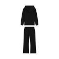 Tuta Freddy da bambina a tinta unita in colorazione nero. Modello di felpa con ampio cappuccio, logo del brand posto sul petto in tono su tono, chiusura sul davanti con cerniera, comode tasche, maniche lunghe con bande laterali con polsini e fondo con orlo dritto. Pantafelpa con molla elastica in vita, logo sulla gamba in tono su tono, comode tasche laterali e fondo con gamba dritta. Tessuto in misto Cotone.