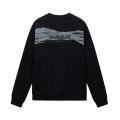 Felpa Napapijri da uomo a tinta unita in colorazione nero con scritta del brand posta sul petto e stampa sul retro in contrasto di colore. Modello girocollo, maniche lunghe con polsini, fondo con orlo dritto e molla elastica in vita. Tessuto in misto cotone.