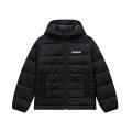 Giubbotto Napapijri da bambino a tinta unita in colorazione nero con scritta del brand sul petto in contrasto di colore. Modello con cappuccio, chiusura sul davanti con cerniera, comode tasche laterali e fondo con orlo dritto. Tessuto in Poliammide.
