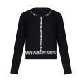 Maglia Gaudi da donna a tinta unita in colorazione nero con dettagli con brillantini sul davanti e attorno al collo in contrasto di colore. Modello girocollo, maniche lunghe con polsini, fondo con orlo dritto e molla elastica in vita. Tessuto in misto Viscosa.