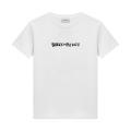 T-shirt Bikkembergs da bambino a tinta unita in colorazione bianco con stampa del brand sul davanti in contrasto di colore. Modello girocollo, maniche corte e fondo con orlo dritto.