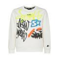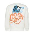 T-shirt Starter da bambino a tinta unita in colorazione panna con stampa e disegni del brand sul davanti e sul retro in contrasto di colore. Modello girocollo, maniche lunghe, fondo con orlo dritto e molla elastica in vita.