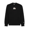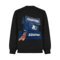 Felpa Starter da bambino a tinta unita in colorazione nero con stampa del brand posta sul davanti e in grande sul retro in contrasto di colore. Modello girocollo, maniche lunghe con polsini, fondo con orlo dritto e molla elastica in vita.