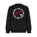 Felpa Starter da bambino a tinta unita in colorazione nero con stampa del brand posta sul davanti e in grande sul retro in contrasto di colore. Modello girocollo, maniche lunghe con polsini, fondo con orlo dritto e molla elastica in vita.