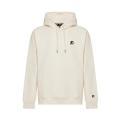 Felpa Starter da uomo a tinta unita in colorazione panna con logo del brand posto sul petto e stampa in grande sul retro in contrasto di colore. Modello con ampio cappuccio, tasca marsupio sul davanti, maniche lunghe con polsini, fondo con orlo dritto e molla elastica in vita. Tessuto in cotone.
