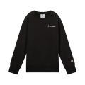 Felpa Champion da bambino a tinta unita in colorazione nero con scritta del brand cucita sul petto e loghetto sul polso in contrasto di colore. Modello girocollo, maniche lunghe con polsini, fondo con orlo dritto e molla elastica in vita. Tessuto in misto Cotone.