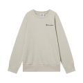 Felpa Champion da bambino a tinta unita in colorazione salvia con scritta del brand cucita sul petto e loghetto sul polso in contrasto di colore. Modello girocollo, maniche lunghe con polsini, fondo con orlo dritto e molla elastica in vita. Tessuto in misto Cotone.