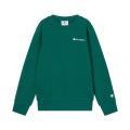 Felpa Champion da bambino a tinta unita in colorazione verde con scritta del brand cucita sul petto e loghetto sul polso in contrasto di colore. Modello girocollo, maniche lunghe con polsini, fondo con orlo dritto e molla elastica in vita. Tessuto in misto Cotone.