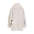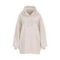 Felpa Guess da donna a tinta unita in colorazione panna con scritta del brand posta sul davanti in tono su tono. Modello lungo, ampio cappuccio, maniche lunghe con polsini, fondo con orlo dritto e molla elastica. Tessuto in misto Cotone.
