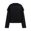 Maglia Guess da donna a tinta unita in colorazione nero con dettagli sule spalle. Modello con mezzo collo alto, maniche lunghe con polsini, fondo con orlo dritto e molla elastica in vita. Tessuto in misto Cotone.