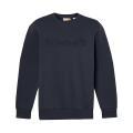 Felpa Timberland da uomo a tinta unita in colorazione blu con scritta del brand cucita sul davanti in tono su tono. Modello girocollo, maniche lunghe con polsini, fondo con orlo dritto e molla elastica in vita. Tessuto in misto Cotone.