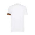 T-shirt Dsquared da uomo a tinta unita in colorazione bianco con scritta del brand posta sul retro e molla elastica sulla manica logata in contrasto di colore. Modello girocollo, maniche corte e fondo con orlo dritto. Tessuto in misto Cotone.