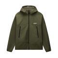 Giubbotto Napapijri da uomo a tinta unita in colorazione militare con classica toppa del brand posta sul petto e sulla manica in contrasto di colore. Modello con ampio cappuccio, chiusura sul davanti con cerniera, maniche lunghe, comode tasche laterali e fondo con orlo dritto. Tessuto in Poliestere.