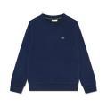 Felpa Lacoste da bambino a tinta unita in colorazione blu con classica logo del brand posto sul petto in contrasto di colore. Modello girocollo, maniche lunghe con polsini, fondo con orlo dritto e molla elastica in vita. Tessuto in misto Cotone.