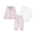 Completo Lacoste da neonato in colorazione sabbia e bianco. Modello con felpa con ampio cappuccio, logo sul petto, chiusura sul davanti con cerniera, comode tasche e fondo dritto. Body con grande logo sul davanti, girocollo e maniche lunghe. Pantafelpa con molla elastica in vita, logo piccolo sulla gamba e fondo con polsini alle caviglie. Tessuto in Cotone.