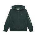 Felpa Lacoste da bambino a tinta unita in colorazione verde con classico logo del brand cucito sul petto e sulle maniche in contrasto di colore. Modello con ampio cappuccio, chiusura con cerniera nella parte frontale, comode tasche laterali, maniche lunghe con polsini, fondo con orlo dritto e molla elastica in vita. Tessuto in misto Cotone.