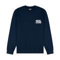 Felpa Wrangler da uomo a tinta unita in colorazione blu con stampa del brand posta sul petto in contrasto di colore. Modello girocollo, maniche lunghe con polsini, fondo con orlo dritto e molla elastica in vita. Tessuto in misto Cotone.