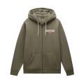 Felpa Napapijri da uomo a tinta unita in colorazione verde militare con logo del brand sul petto in contrasto di colore. Modello con ampio cappuccio, chiusura sul davanti con cerniera, tasche laterali, maniche lunghe con polsini, fondo con orlo dritto e molla elastica in vita. Tessuto in misto cotone.