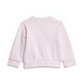 Tuta Adidas da neonata in colorazione rosa e fucsia. Modello con felpa con stampa sul davanti in contrasto di colore, girocollo, maniche lunghe con polsini e fondo con orlo dritto. Pantafelpa con molla elastica, logo sulla gamba e fondo con polsini alle caviglie. Tessuto in misto cotone.