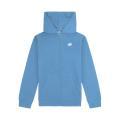 Felpa New Balance da bambino a tinta unita in colorazione indaco con classico logo del brand cucito sul petto in contrasto di colore. Modello con ampio cappuccio, chiusura sul davanti con cerniera, comode tasche laterali, fondo con orlo dritto e molla elastica in vita. Tessuto in cotone.