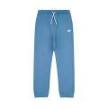 Pantafelpa New Balance da bambino a tinta unita in colorazione indaco con stampa del brand sulla gamba in contrasto di colore. Modello con molla elastica in vita con lacci, comode tasche laterali e fondo con polsini alle caviglie. Tessuto in cotone.