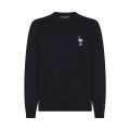 Maglia Sun68 da uomo a tinta unita in colorazione blu con disegno posto sul petto e logo cucito sul polso in contrasto di colore. Modello girocollo, maniche lunghe con polsini, fondo con orlo dritto e molla elastica in vita. Tessuto in misto Lana e Poliammide.