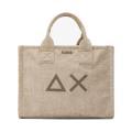 Borsa Sun68 da donna a tinta unita in colorazione beige con classico logo del brand posto sul davanti in contrasto di colore. Modello in velluto con due manici, tracolla rimovibile, tasca interna e chiusura con cerniera. Tessuto in Poliestere.