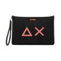 Pochette Sun68 da donna a tinta unita in colorazione nero e classico logo del brand posto sul davanti in contrasto di colore. Modello in velluto con chiusura con cerniera nella parte superiore e laccetto laterale. Tessuto in Poliestere.