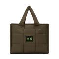 Borsa Sun68 da donna a tinta unita in colorazione militare e classico toppa del brand posto sul davanti in contrasto di colore. Modello con due manici, tracolla rimovibile, tasca interna e chiusura con cerniera . Tessuto in Poliammide.