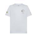 T-shirt Sun68 da bambino a tinta unita in colorazione bianco con stampa sul petto e scritte sulle maniche in contrasto di colore. Modello girocollo, maniche corte e fondo con orlo dritto. Tessuto in Cotone.