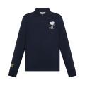 Polo Sun68 da bambino a tinta unita in colorazione blu con disegno sul petto e loghi sui polsini in contrasto di colore. Modello con classico colletto, bottoncini sul davanti, maniche lunghe con polsini e fondo con orlo dritto. Tessuto in misto Cotone.