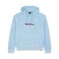 Felpa Dickies da uomo a tinta unita in colorazione cielo con scritta del brand posta sul davanti in contrasto di colore. Modello con ampio cappuccio, maniche lunghe con polsini, tasca marsupio sul davanti, fondo con orlo dritto e molla elastica in vita. Tessuto in misto cotone.